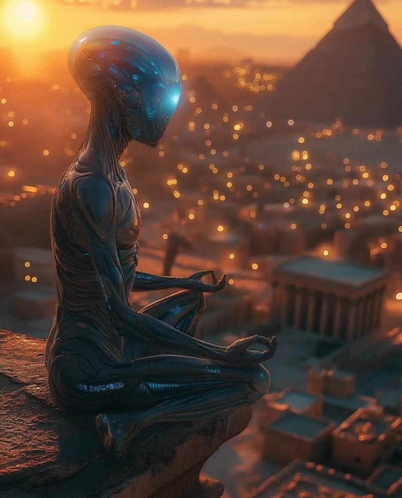 -لقد أخبرتك أن كلمة (لا) تكفي، لست في مزاج للمجاملات الاجتماعية معك، حسنًا، هذا يبقى لنا سطح الأرض، بشر وحيوانات ونباتات فقط كما يظهر لي في هذا البعد، هناك أبعاد أخرى في نفس السطح لكن اختراقها يحتاج طاقة عظيمة، والبشر هم من يحكم السطح لكنهم مغرورون ومتفرقون لآلاف القوميات حسب اعتقاداتهم لكن لربما يرحبون لك فهم سهلو الانقياد للأقوياء ويحبون الغرباء القادمين من الأعلى رغم أنهم يعتبرون أنفسهم مركز الكون، ولديهم أهرامات كذلك؟! يا للروعة؟! يا ترى من بناها لهم؟! غنيمة سهلة ولكن توخ الحذر فقط من أفكار جماعة الأرض المسطحة وستكون بخير طالما كنت مثلهم مملا وثقيل الدم وغثيث كما أخبرتني..